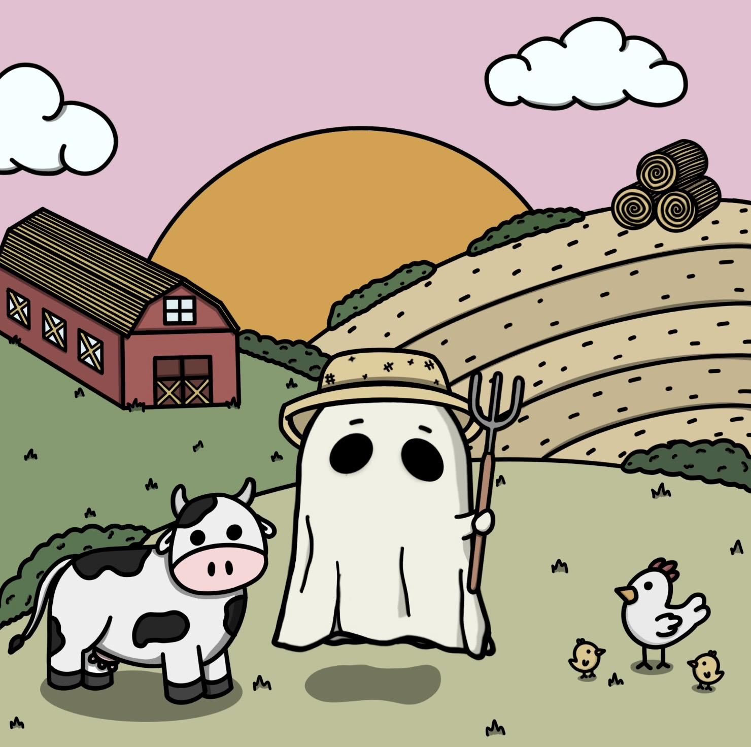 Printed tote bag with Farmer Ghost illustration