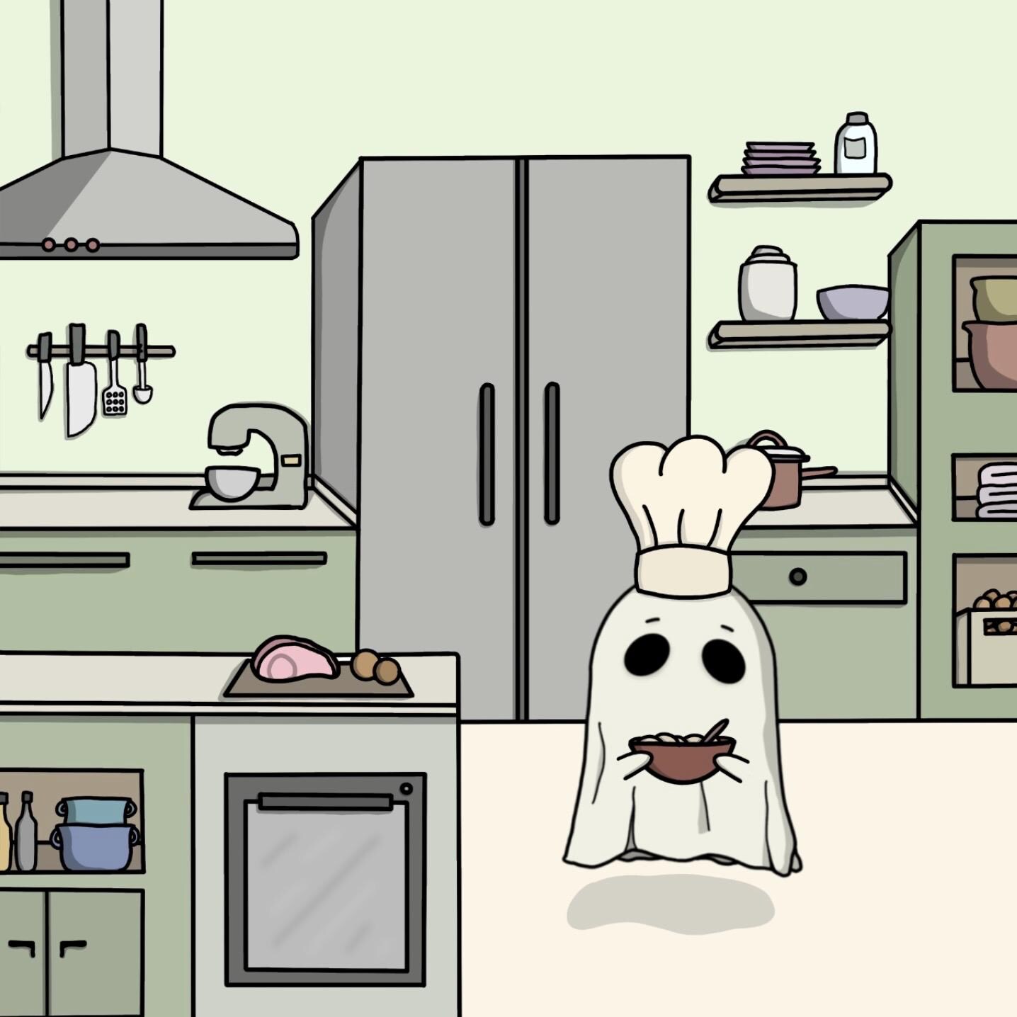 Printed tote bag with Chef Ghost illustration