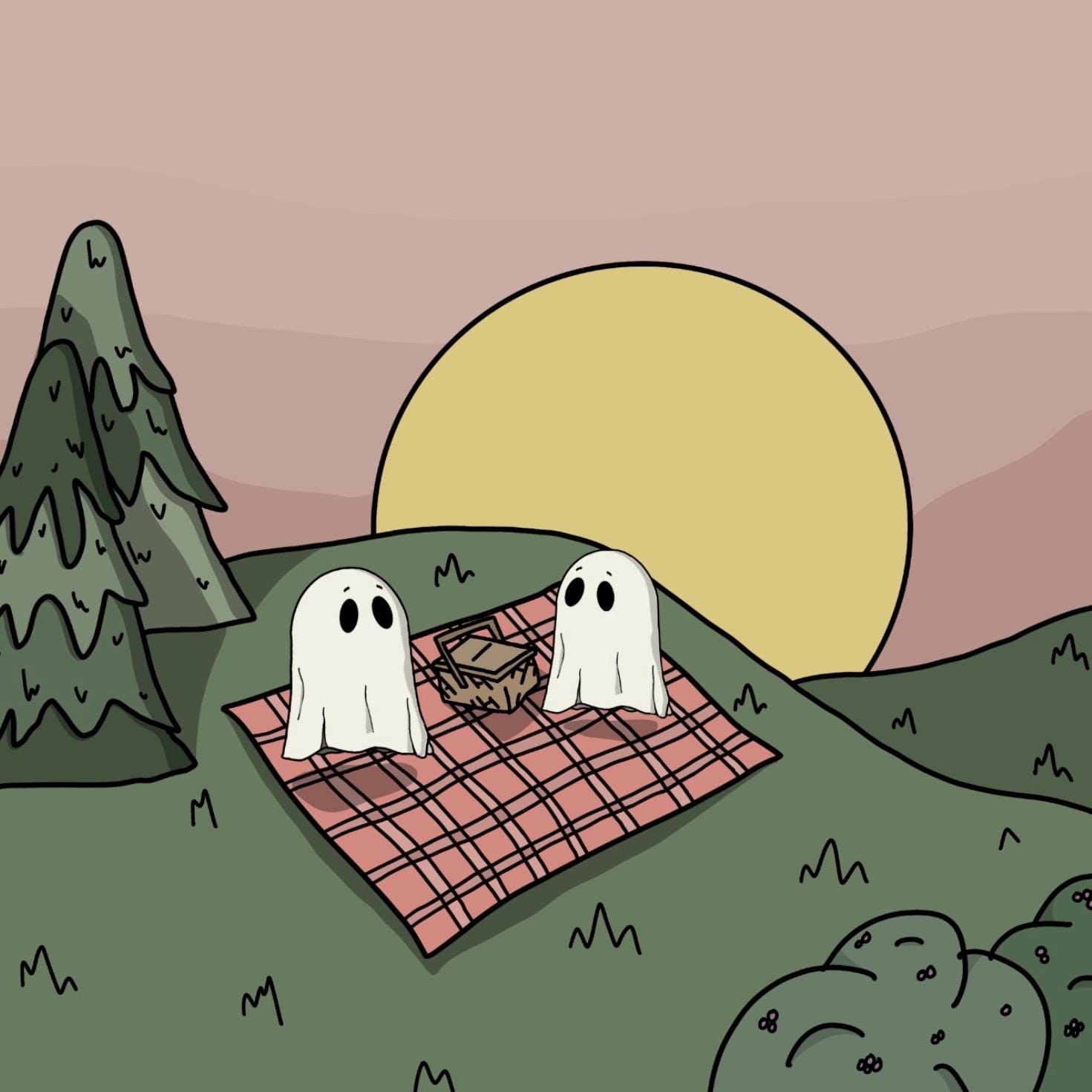 Printed tote bag with Picnic Ghost illustration